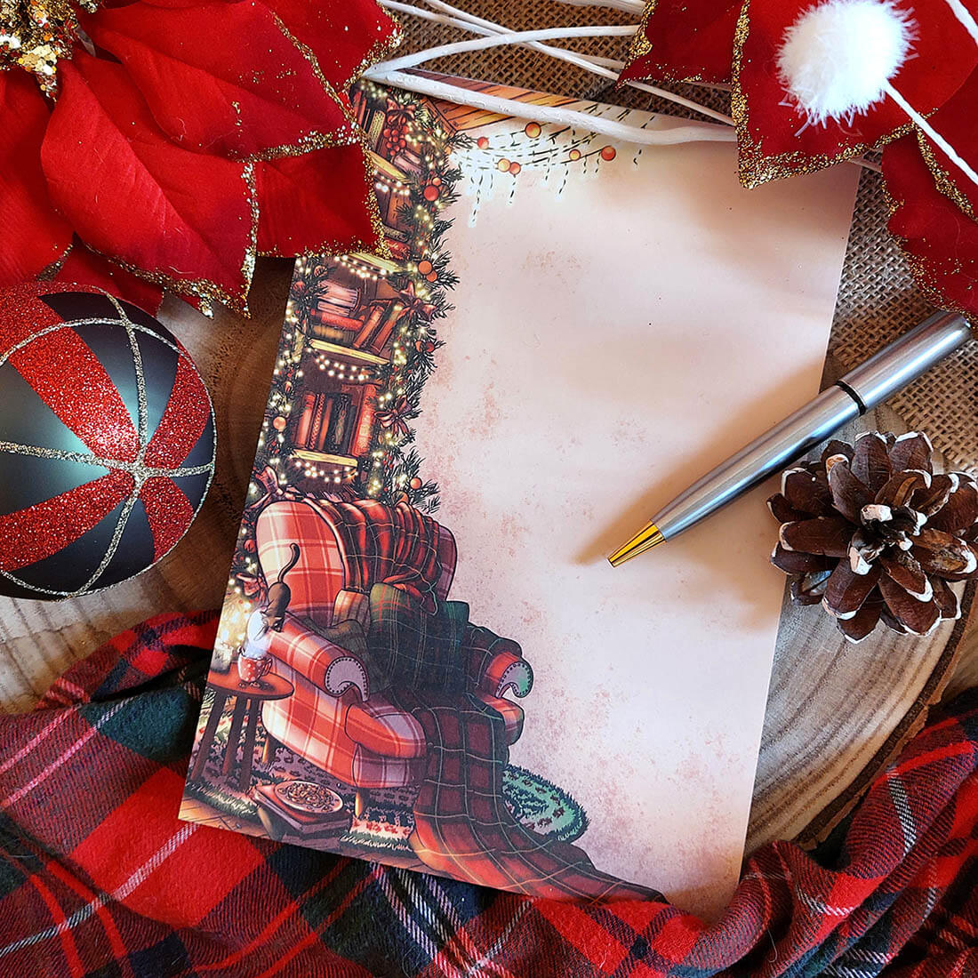 La liste des cadeaux de Noël, les courses pour le 24 décembre… Mettez un peu de légèreté et de couleur dans les tâches du quotidien avec ce bloc-notes de Noël au visuel cosy et à l’ambiance chaleureuse.