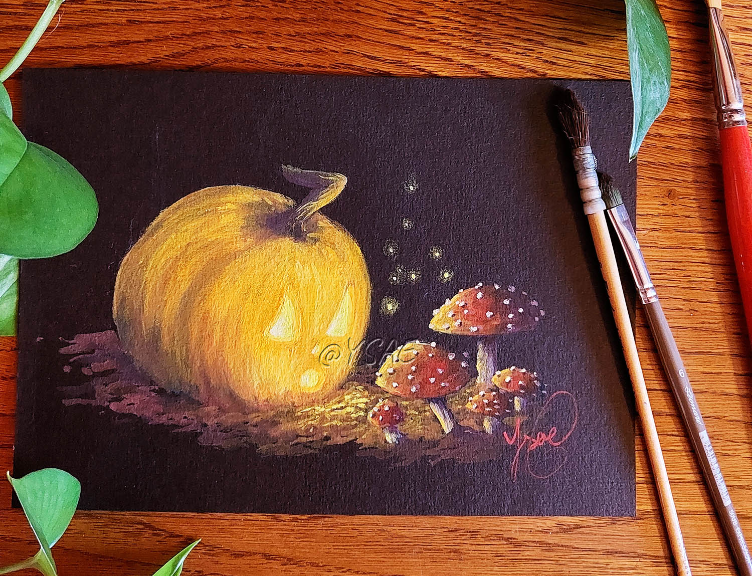 Pour rester dans le thème d’un Halloween magique, découvrez l’adorable Épouvantail émerveillé ou encore le mystérieux Esprit à la lanterne, deux autres gouaches en petit format!